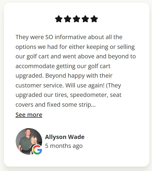 Locally owned golf cart sales and service for north Atlanta. Over 15 years experience. Licensed and insured. How can we help?